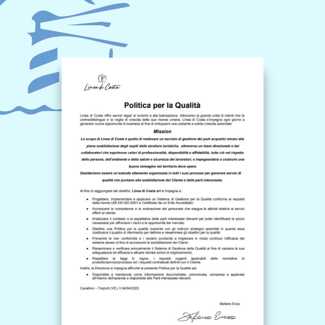 Un impegno, un desiderio che diventa la mission di Linea di Costa. La politica per la qualità diventa un manifesto.